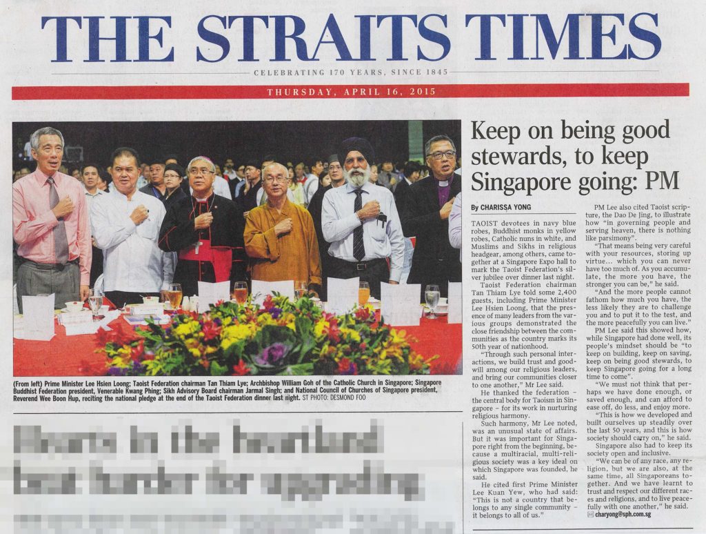 Prime Minister Lee Hsien Loong attended the Harmony Dinner as the guest of honor for celeberating the our nation’s 50th year of independence and Taoist Federation’s Silver Jubiee.