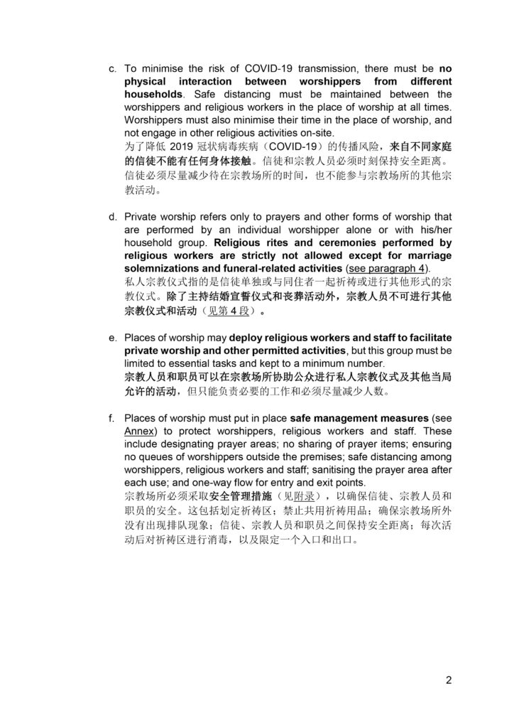 3. 任何时候,只能同时有5人在现场提供上述宗教服务,无需向贸工部申请限时豁免权限。