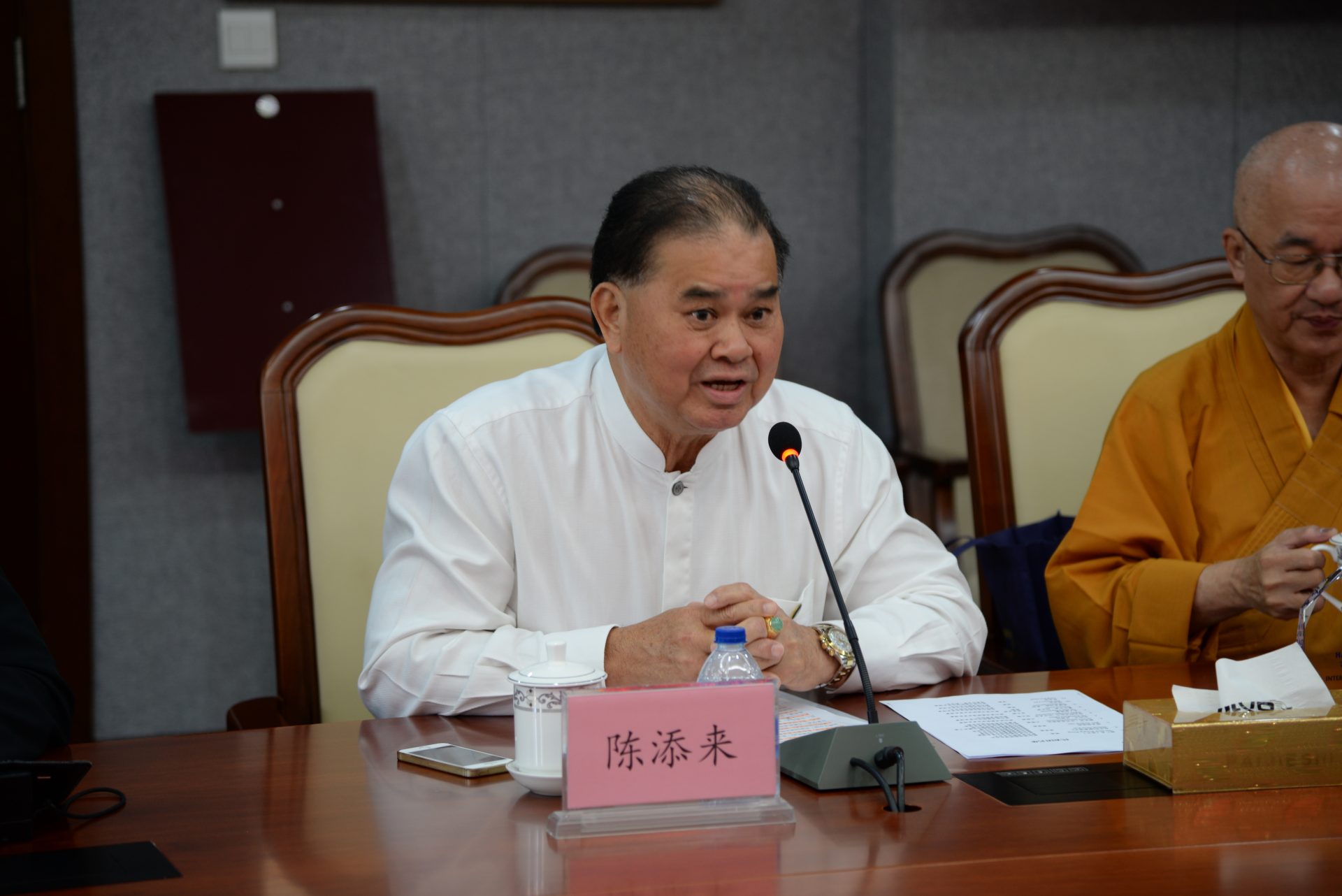 Under the leading of Reverend Guang Pin, President of Taoist Federation (Singapore) Mr Tan Thiam Lye, BBM (L), and Vice President, Mr Ling Kin Huat, PBM, together with other representatives, had a cordial meeting with the China Taoist Association. The Vice President of China Taoist Association, Priest Meng Zhiling, Director of International Sector, Mr Feng He, welcomed the visit of Inter-Religious Organization. Representatives from both sides delivered speeches during the event and conducted friendly discussion on the religious development of both countries.
