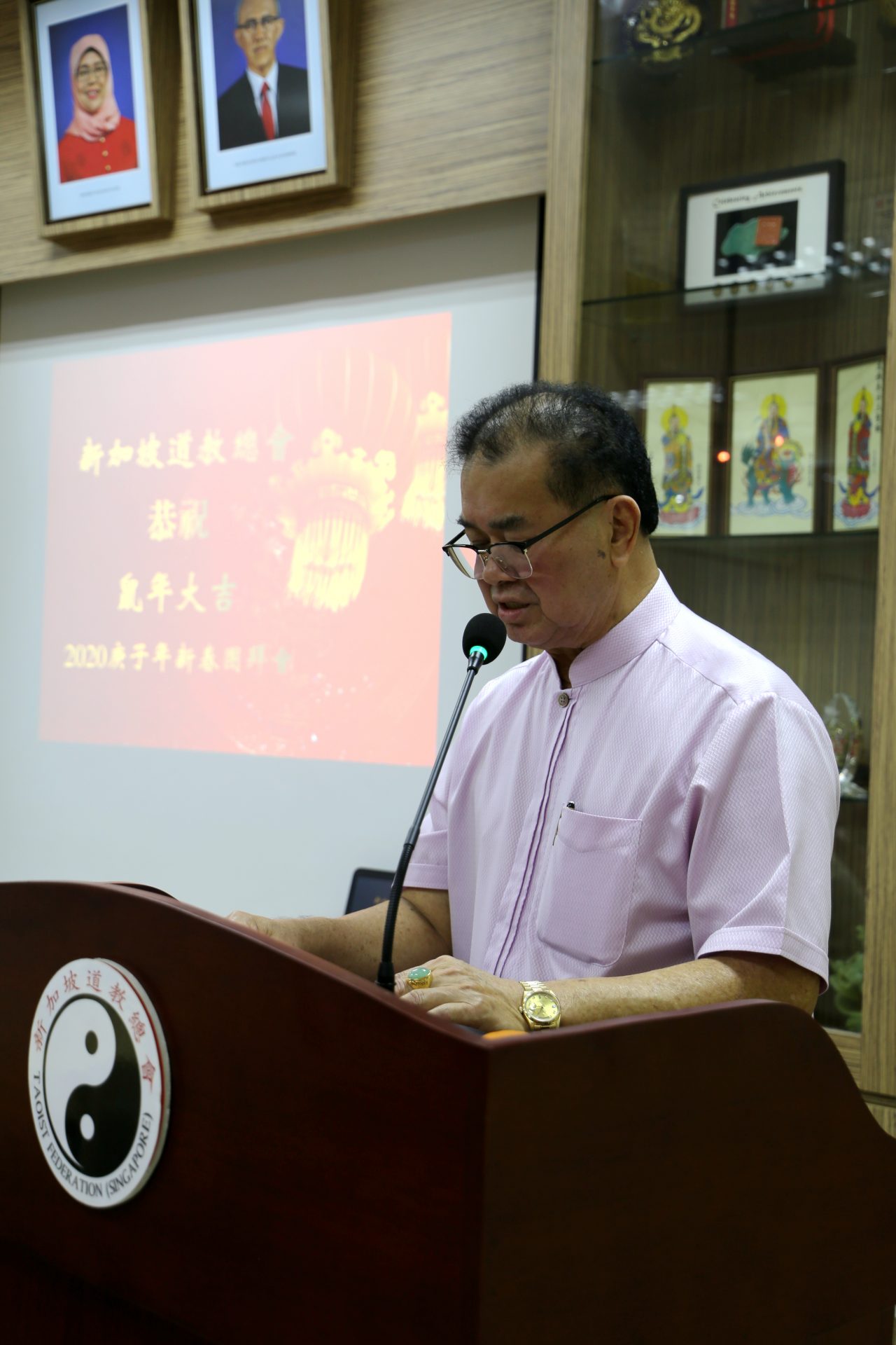2020年1月27日,农历庚子年正月初三,新加坡交通部兼文化、社区及青年部高级政务次长马炎庆先生,来到新加坡道教总会,与道总会长陈添来BBM(L)、道总会员和新加坡各大宗教代表,共庆新春佳节。